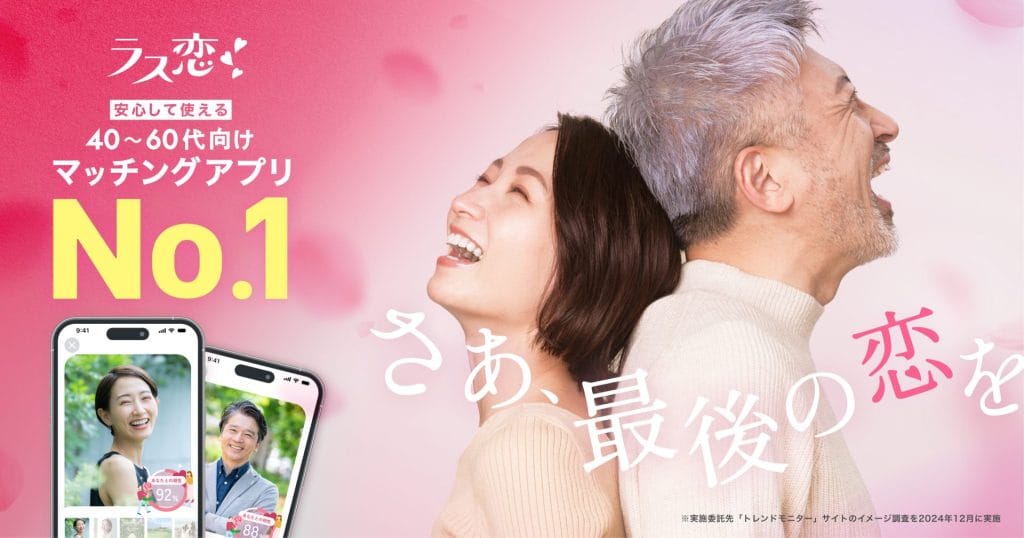 「最後の恋」を見つけることをコンセプトにしたアプリ「ラス恋」は、特に再婚希望者や、落ち着いた年代で真剣なパートナーを探している方に寄り添う設計となっています。独自の価値観マッチングや、プロフィール充実度に応じたボーナスなど、真剣な出会いを後押しする機能が特徴です。