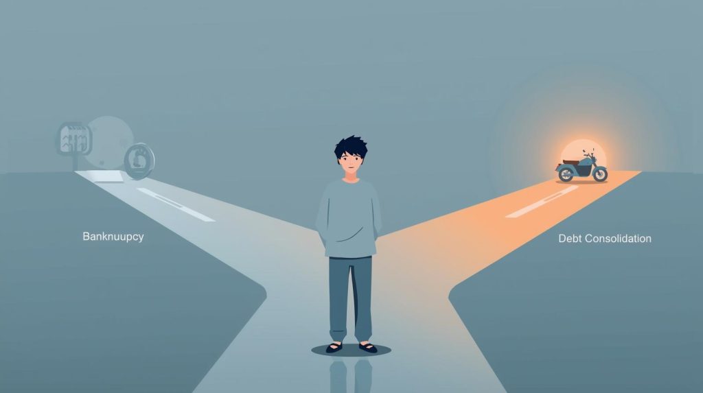 自己破産の手続きには、天国と地獄ほど違う、2つのルートが存在します。それが「同時廃止」と「管財事件」です。そして、あなたの愛車が、その運命の分かれ道を決める鍵となります。